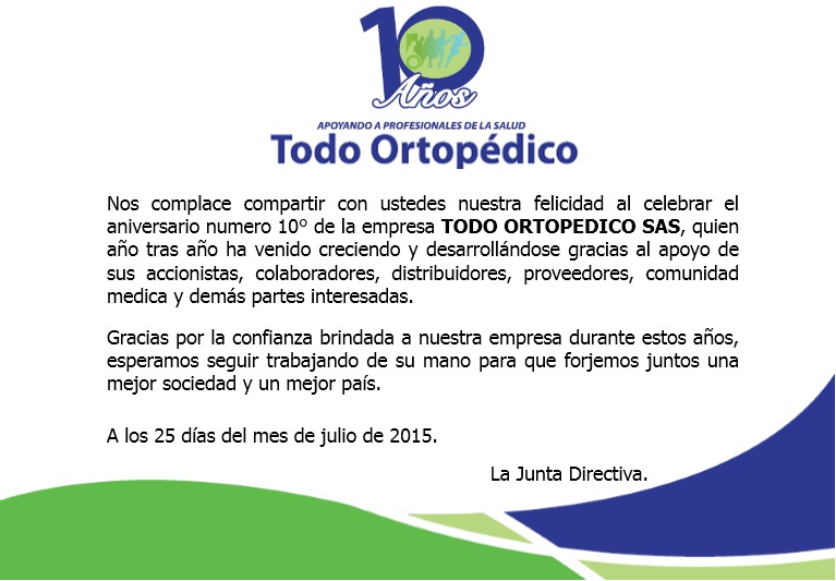 La Marca WASTON hizo presencia en el 59° Congreso Nacional de Ortopedia y Traumatología realizado en la ciudad de Cartagena del 20 al 24 de mayo del presente año, con una muestra comercial a la altura de las grandes exhibiciones a nivel internacional, mostrando la calidad de los productos fabricados por la empresa, a este evento asistieron representantes de la red de distribuidores nacionales, Representantes internacionales (Brasil, Ecuador, México) y desde luego dos representantes de la casa matriz, durante el encuentro se trataron diversos temas relacionados respecto a novedades del producto, nuevos negocios, calidad, presentación y diversidad de productos, consecuentemente con esto la Sociedad Colombiana de Cirugía Ortopédica y Traumatológica SCCOT galardonó a WASTON MEDICAL - TODO ORTOPEDICO como GANADOR en la categoría de mejor Stand Casas Ortopédicas y Nuevas Tecnologías.